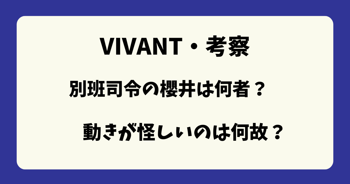今回は「【VIVANT考察】別班司令の櫻井は何者?怪しい動きに乃木が気付いた理由について」と題して、お伝えしました。