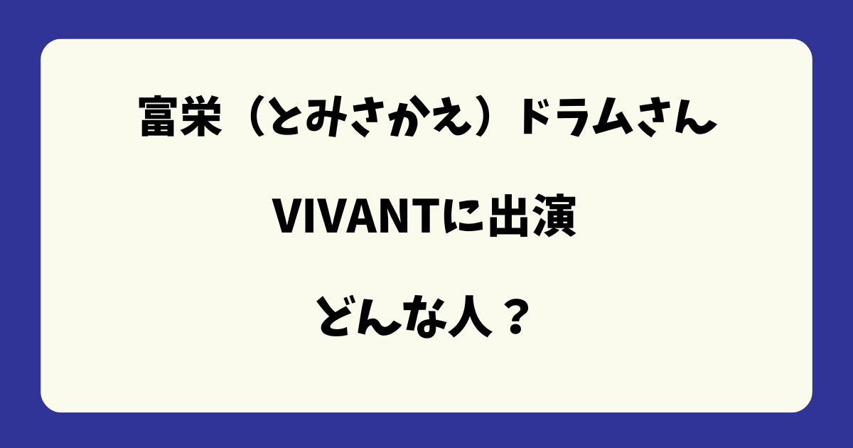 芸名の富栄ドラムという名前ですが、ドラマ「VIVANT(ヴィヴァン)」の役名がドラムということで、芸名を富栄ドラムに改名されてます。