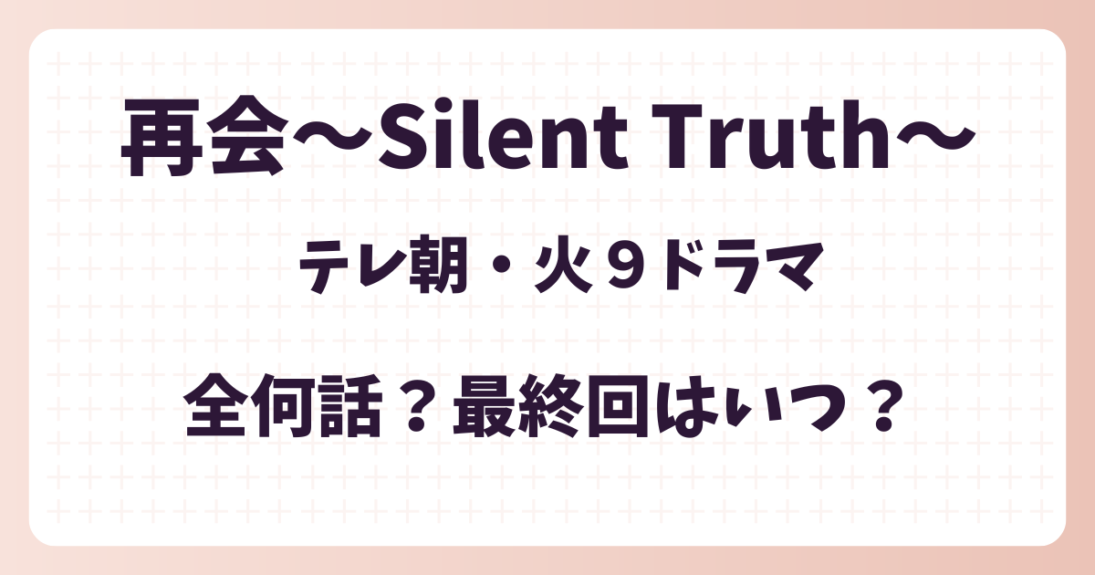 この記事は、テレビドラマ「再会~Silent Truth~」がいつからいつまで放送されるのか、全何話なのか予想を基にまとめてます。