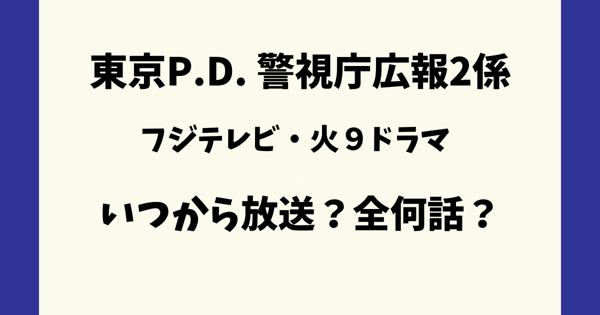 この記事では「東京P.D. 警視庁広報2係・ドラマ放送日はいつからいつまで全何話?最終回の日程も調査」と題してお伝えしました。