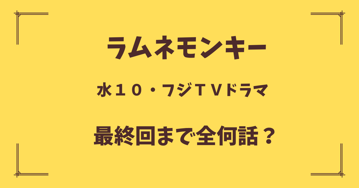 今回は「ラムネモンキー」ドラマがいつからいつまで全何話なのか?最終回の日程についてもお伝えします。