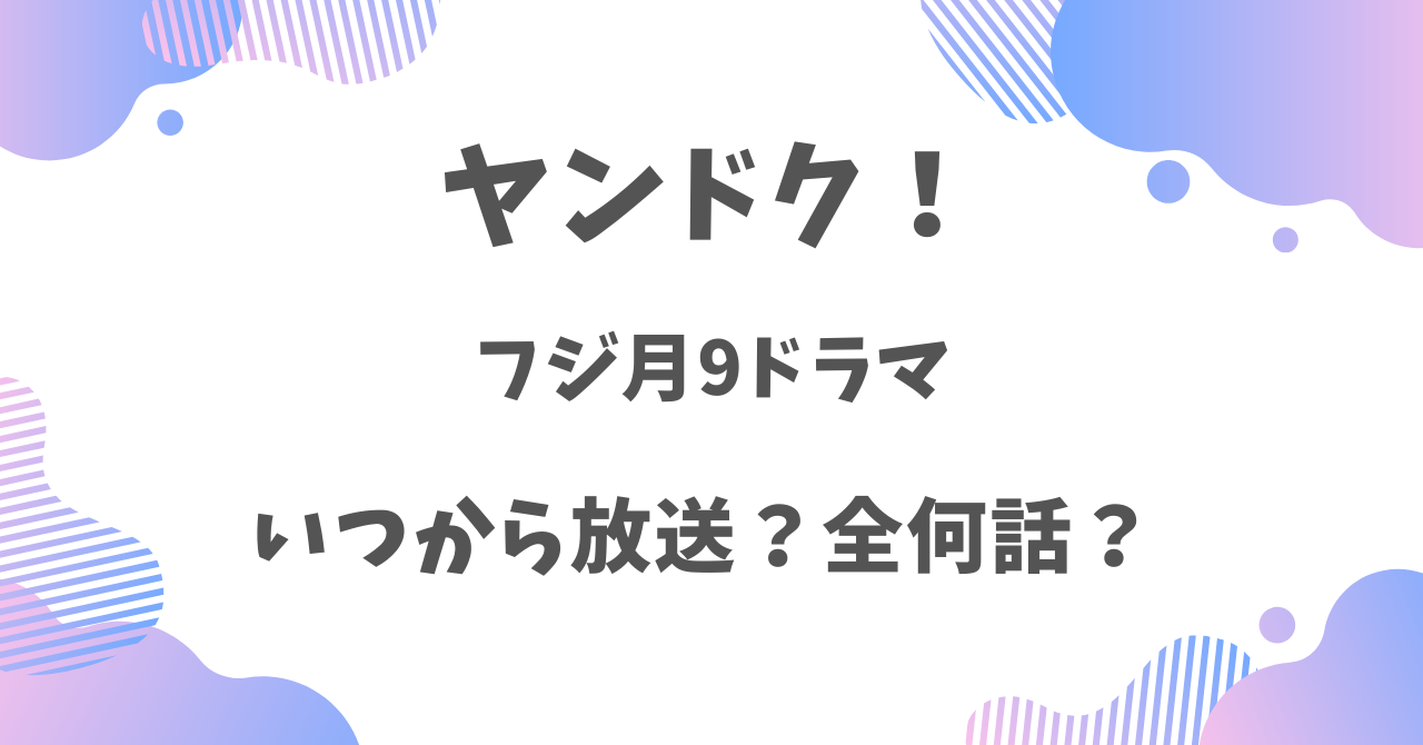 今回は「ヤンドク!」ドラマがいつからいつまで全何話なのか?最終回の日程についてもお伝えします。