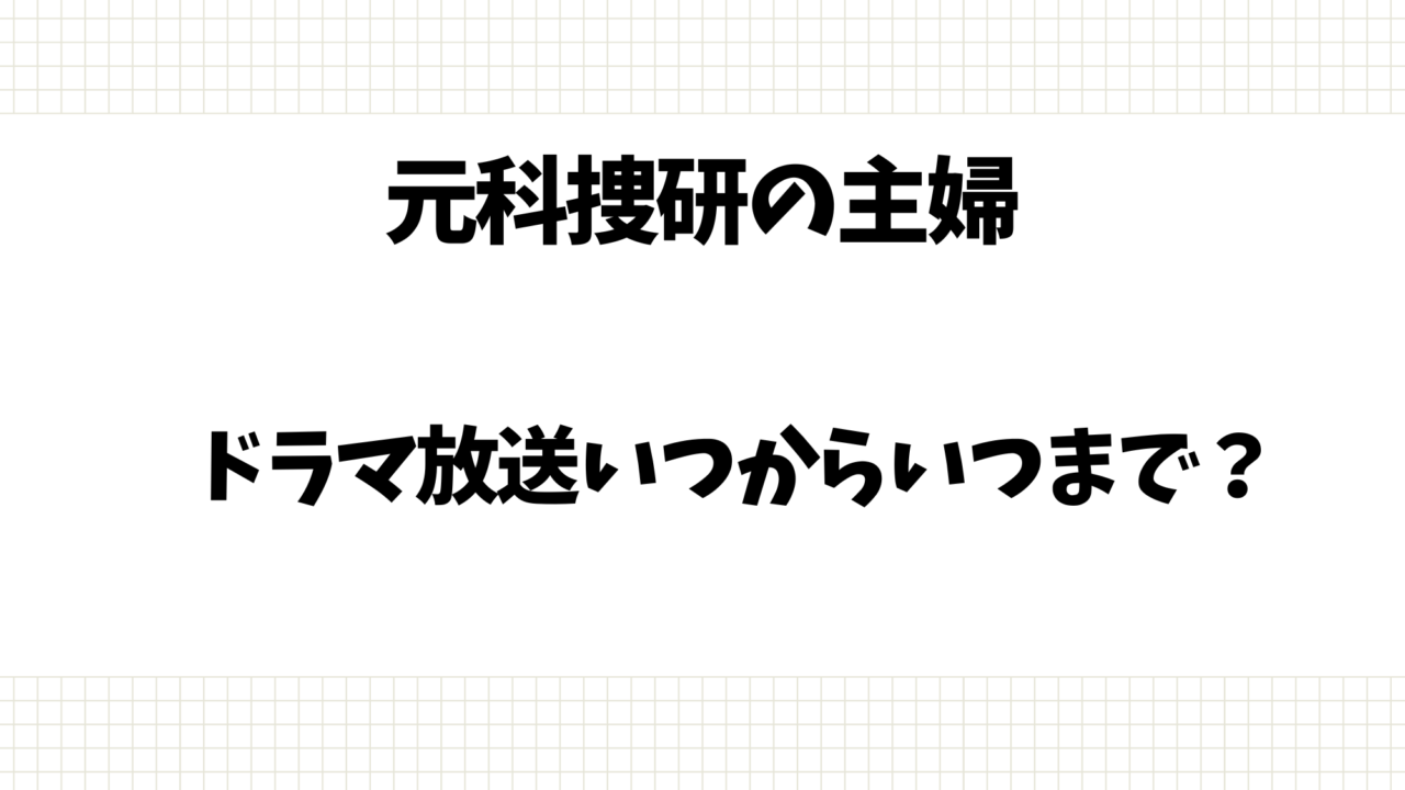 今回は「元科捜研の主婦」ドラマがいつからいつまで全何話なのか?最終回の日程についてもお伝えします。