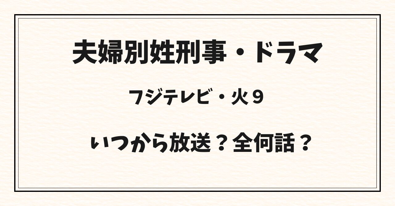 この記事では「夫婦別姓刑事・ドラマ放送日はいつからいつまで全何話?最終回の日程も調査」と題してお伝えしました。